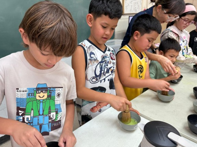 幸いなことに、本校には茶道講師の許状を持つ教員が在籍しており、茶道体験は学期ごとに必ず実施しています。子どもたちはお茶碗の扱いやお辞儀の作法を学び、回を重ねるごとにその所作が美しくなってきました。大人の受講生の皆様には、たてたばかりのお抹茶のほろ苦さの中にあるやさしい甘さとともに、言葉と文化がひとつに結びつく感覚を味わっていただきたいと思っています。