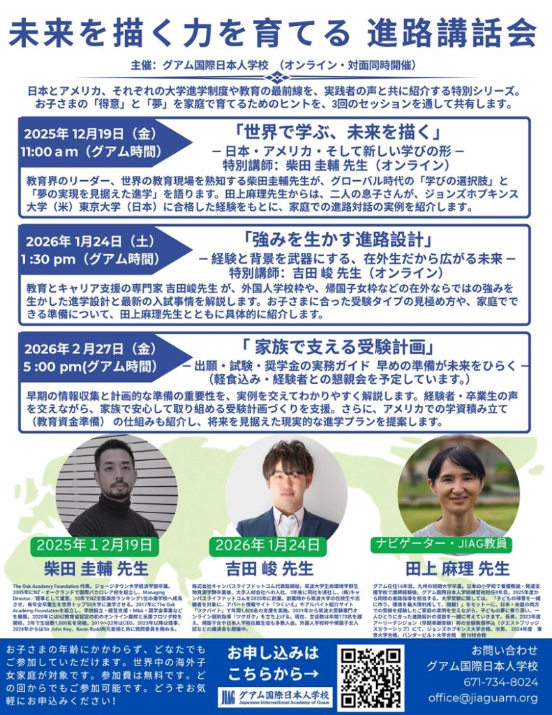 こうしたご家庭のお力に、少しでもなりたい——。当校の生徒や保護者の皆さまに限らず、グアムで暮らすすべての日本人ご家庭に向けて、当校として何ができるかを教職員が一つひとつ考え、形にした企画です。