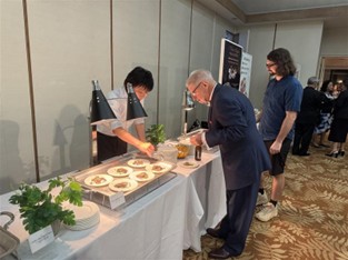 会場にはグアムの政財界をはじめ、多くの重要な関係者が参集し、華やかな雰囲気の中で交流が行われました。公邸料理人によるお料理が振る舞われたほか、日系企業による展示ブースやパネルも設置され、来場者の関心を集めていました。