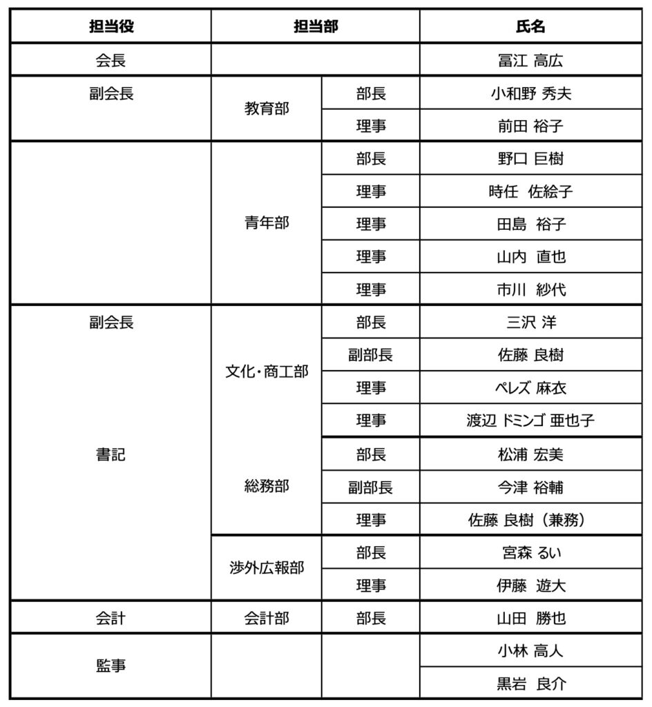 日本人会組織(2025年度 日本人会理事会名簿/敬称略)